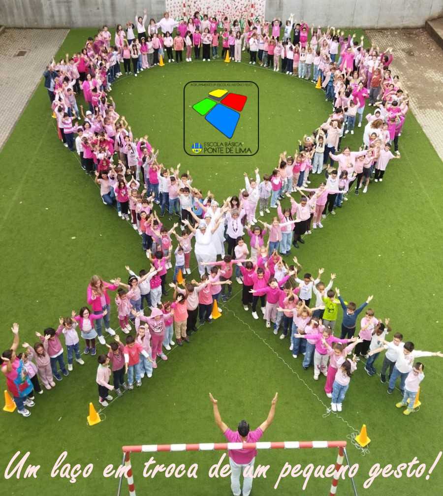 Durante o mês de outubro, o Jardim de Infância e a Escola Básica de Ponte de Lima uniram-se à campanha Onda Rosa, uma iniciativa que visa sensibilizar para a luta contra o cancro da mama. Sob o lema “Um laço em troca de um pequeno gesto”, alunos, pais e toda a comunidade educativa participaram com entusiasmo e solidariedade.