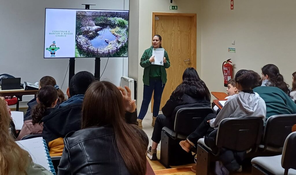- Requalificação do charco pedagógico (7.º ano) – os alunos conheceram o projeto, aprenderam como se constrói e mantém um charco e realizaram a sua ficha de caracterização;