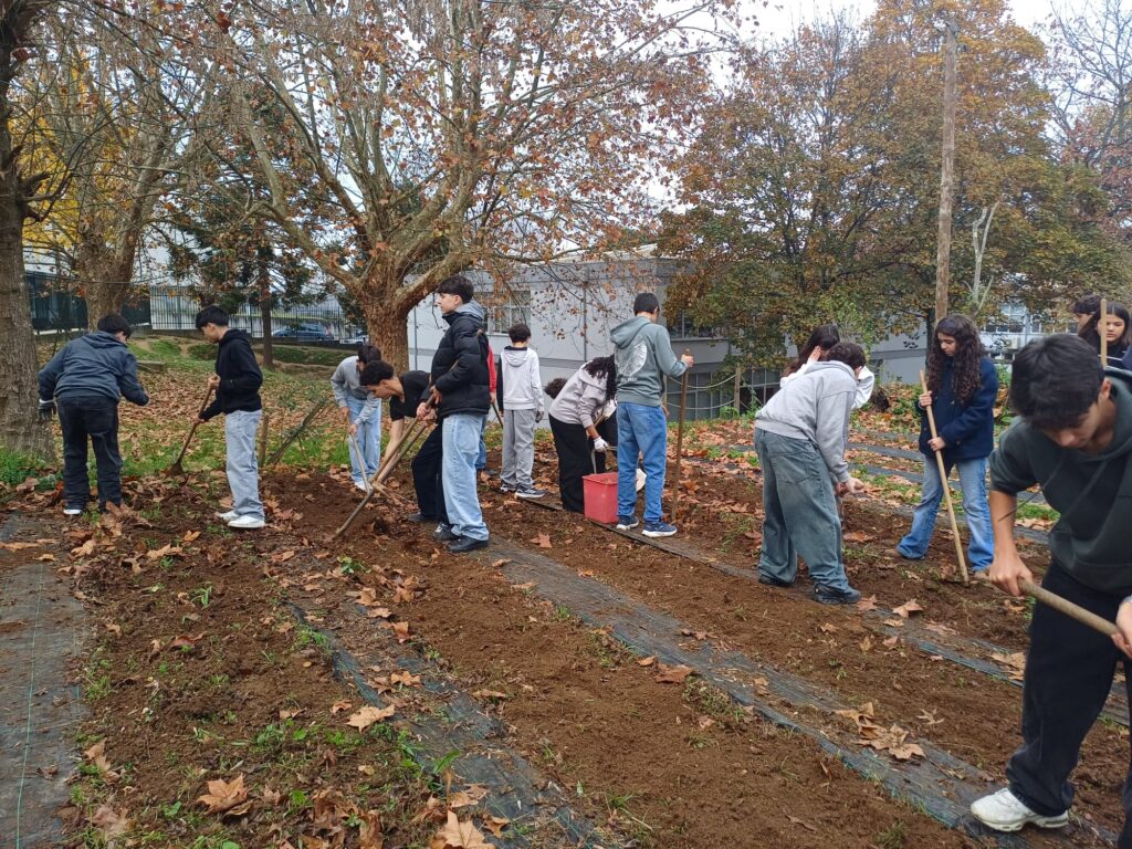 - Horta escolar (8.º ano) – planearam o calendário de culturas, exploraram ferramentas agrícolas e estudaram rotações e consociações;