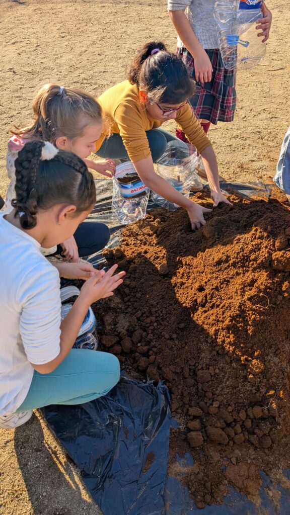 As crianças participaram ativamente, tendo se envolvido plenamente na atividade, em todas as fases da sementeira.