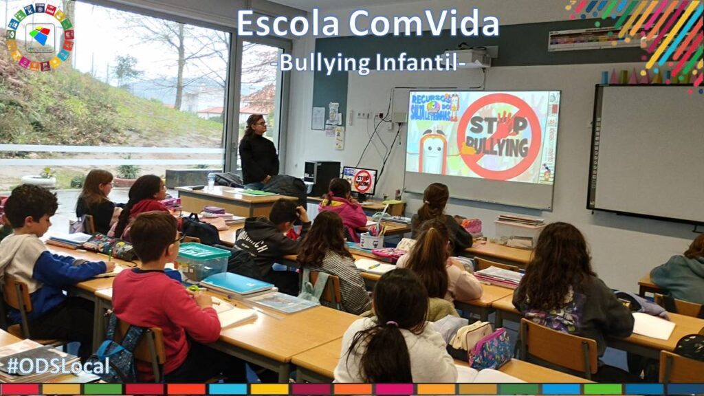 É neste dia simbólico que a turma P4B recebeu uma visita especial: a mãe e encarregada de educação do aluno Martim Neves, Mónica Afonso de Melo, que dinamizou a atividade “Bullying Infantil” integrada no projeto Escola ComVida.