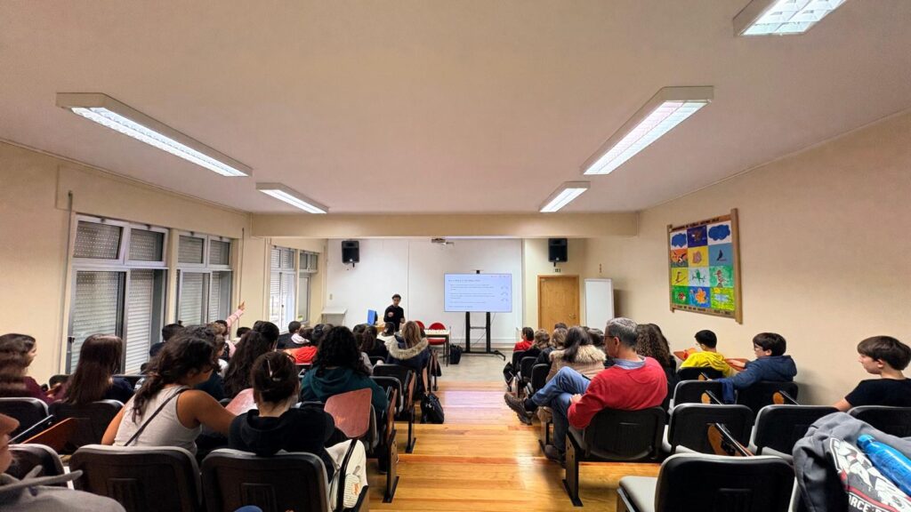 Os alunos participaram de forma ativa, colocando questões e partilhando reflexões, o que contribuiu para enriquecer o debate e consolidar aprendizagens.