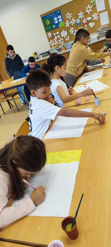 No início do terceiro período, a turma F3A recebeu a visita de um Encarregado de Educação que se ofereceu para realizar uma atividade, onde os alunos, associaram as emoções sentidas, ao longo de um dia, a representações icónicas e pinturas.
